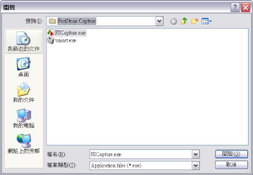 聰明如你應該知道要怎麼改了吧。例如你要執行的程式叫做「FSCaptureHelp.chm」,這是FastStone Capture的安裝檔,那麼我們從中間插入一行,變成: