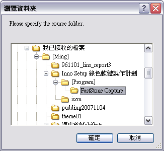 • 應用程式資料夾名稱:基本上是跟程式名稱一樣即可。你可以在檔案名稱用\來做多階層的檔案,例如「MyGreenSoftware\FastStone Capture」,他就會先建立一個MyGreenSoftware,裡面再建立一個FastStone Capture,這個小技巧可以方便日後管理你安裝的綠色軟體。