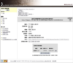 來看看item-display頁面,這版面還真的很令人懷念。崑山大學也沒有做太多修改,甚至是metadata欄位都是用原始的DC。handle代碼也是原始的123456789,但這比較是系統的問題。