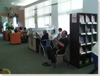 二樓另一邊則是資訊檢索區。但電腦並沒有放著讓人使用,而是需要到一樓流通櫃台申請密碼才能用,無線網路也是一樣要申請密碼。電腦螢幕上顯示沒看過的系統,而申請頗麻煩所以我就沒有繼續碰下去了。